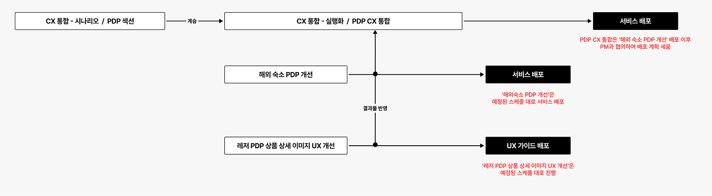 CX 통합 방향성 도출 과정과 기존 전략과제 실행과의 충돌이 발생하는 지점을 어떻게 조율해 나갈 것인지 세부적인 방향성을 설정하고 유관부서와 협의를 진행 했습니다.