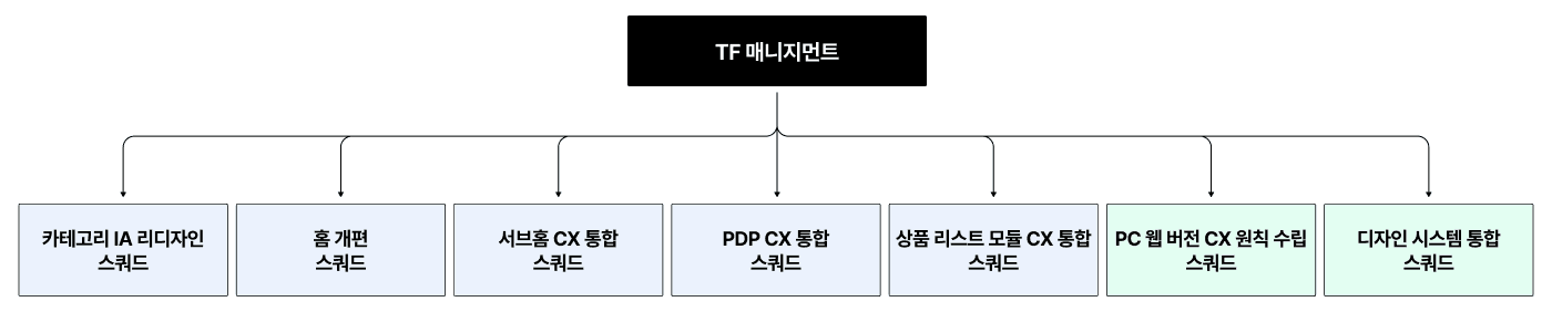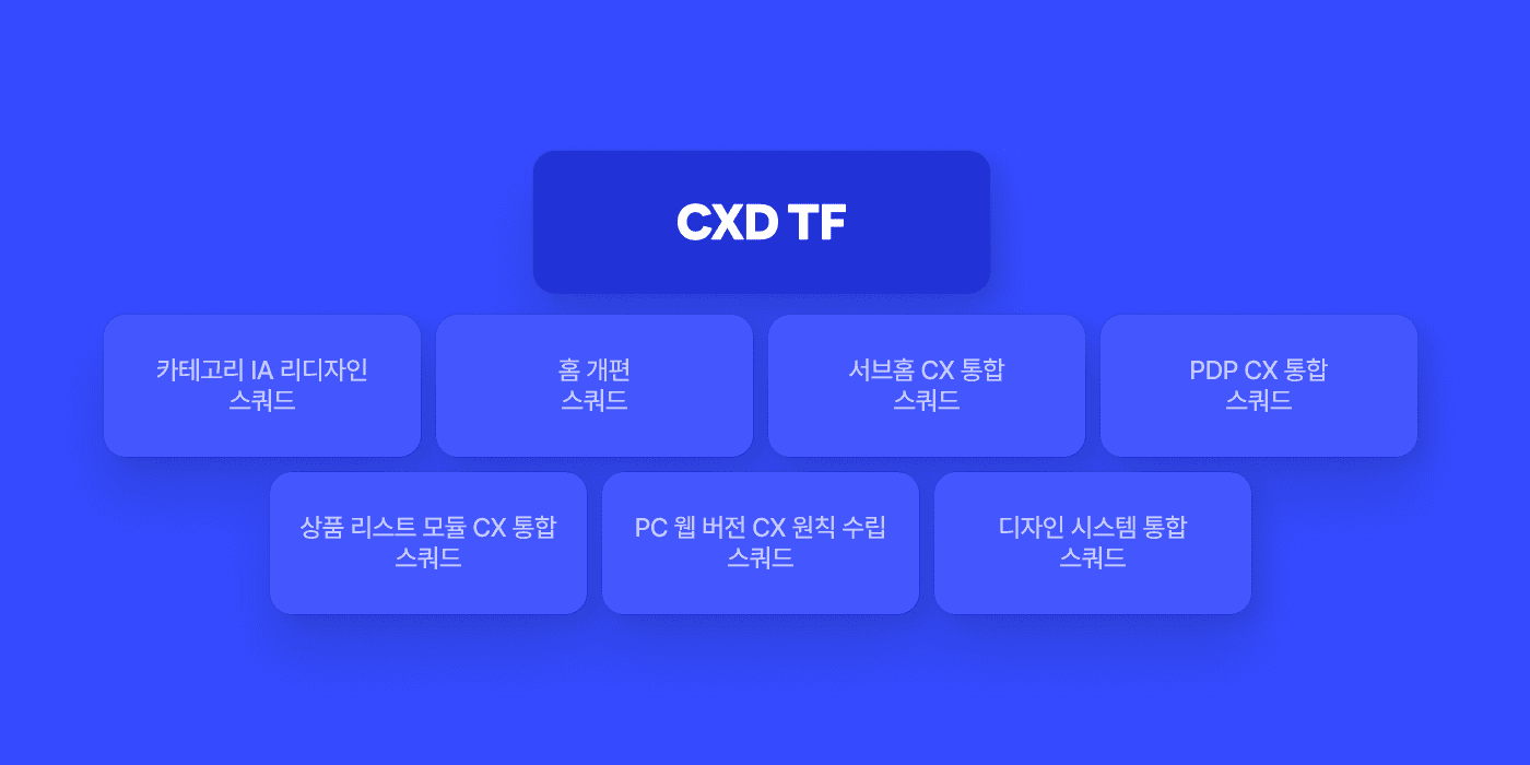 디자인 TF를 조직하고 스쿼드 체계를 구축했으며, 스쿼드별 담당 디자이너를 배정하고 각 스쿼드의 과제와 목표를 정의하여 프로젝트를 런칭했습니다.