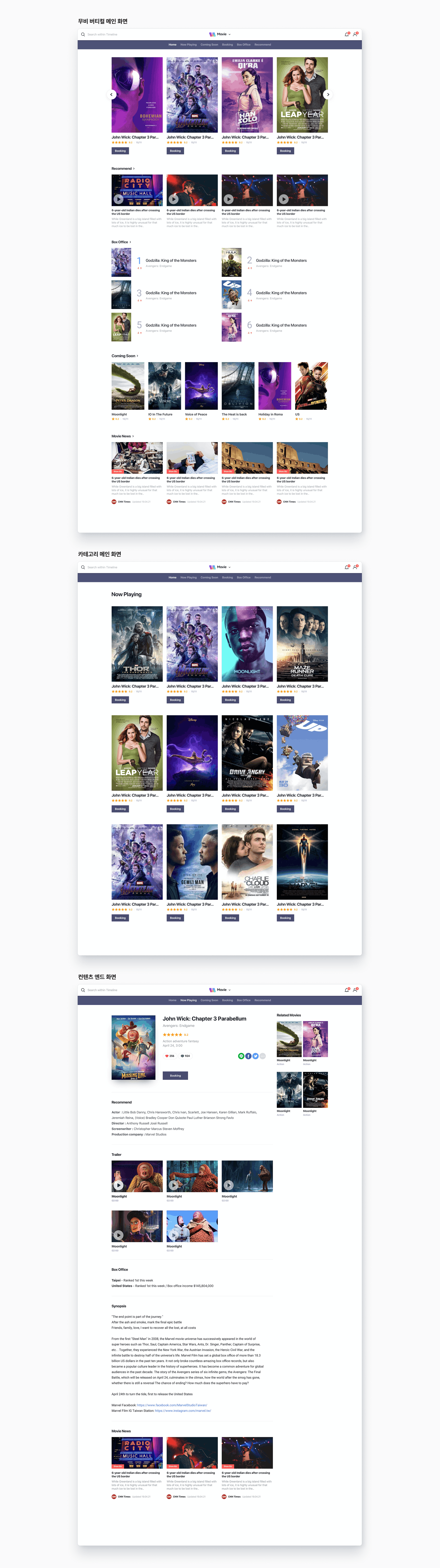 컨텐츠 엔드에서는 영화의 주요 정보와 트레일러를 제공하며, 영화 예매 퍼널로 이어지는 진입점을 제공합니다. 또한 해당 영화와 유사한 다른 영화를 추천하는 ‘Related Movie’ 모듈을 배치하여, 사용자가 추가적인 영화 정보를 탐색할 수 있도록 설계했습니다.