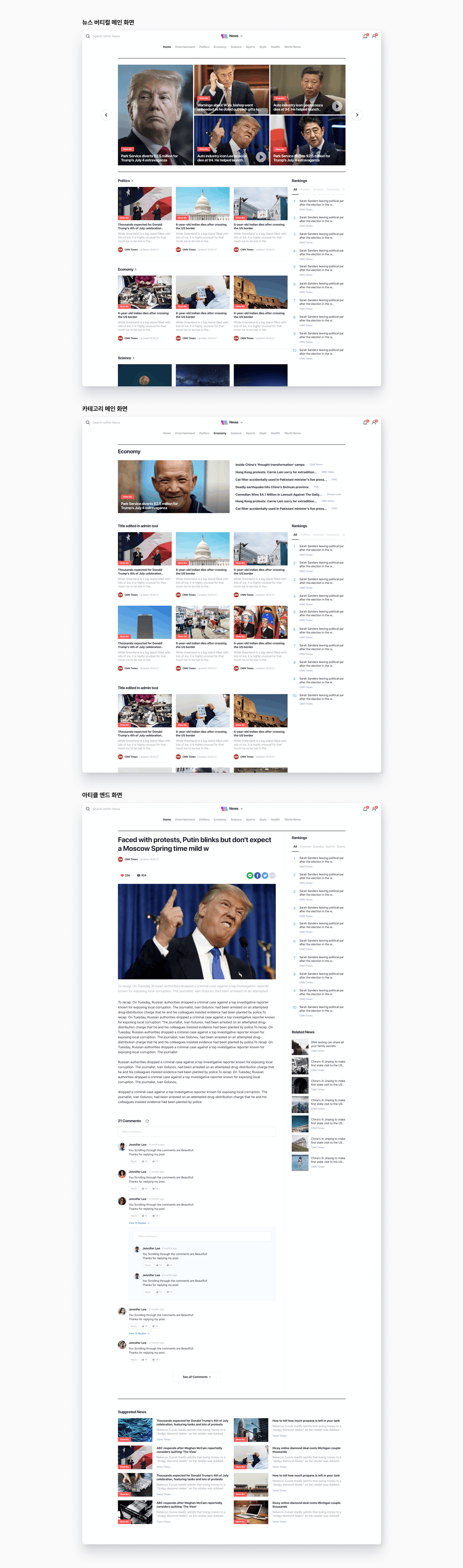 아티클 엔드에서는 뉴스 콘텐츠별 댓글 서비스를 제공하며, 동시에 다른 뉴스 아티클로 트래픽을 유도하기 위해 ‘Suggested News’ 섹션을 배치했습니다.