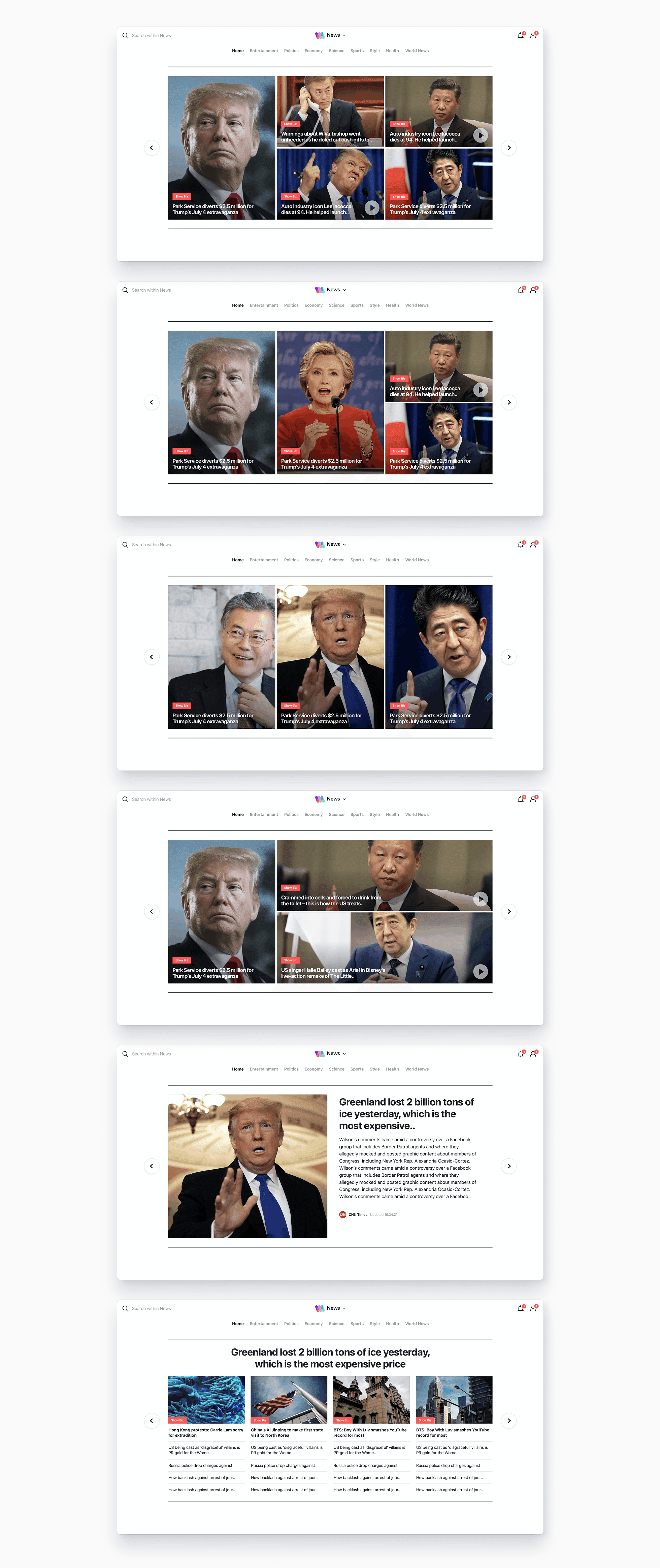 히어로 섹션의 레이아웃은 뉴스 콘텐츠의 중요도와 아젠다 설정에 직접적인 영향을 미칩니다. 이에 따라 시의성과 기사 중요도에 맞추어 가장 적합한 유형을 선택할 수 있도록 다양한 옵션을 제공했습니다.