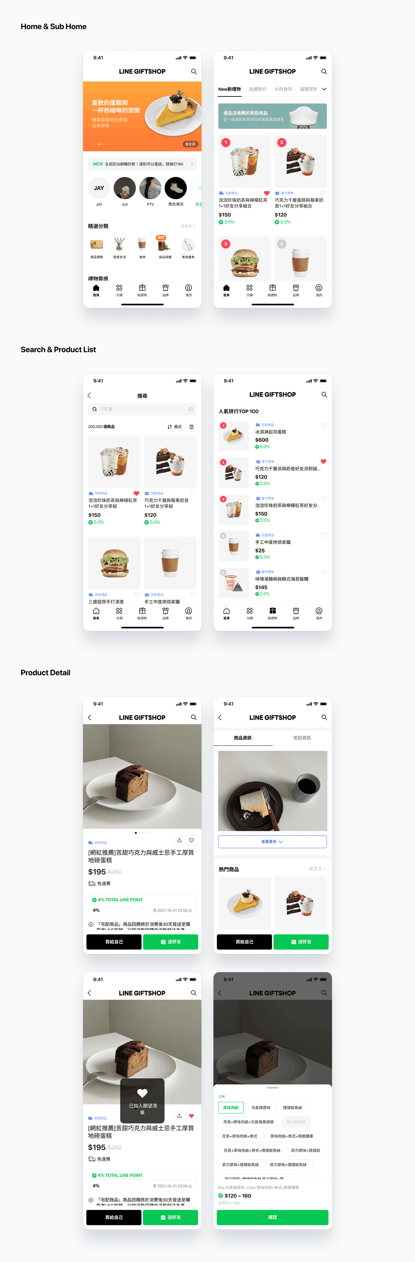 메신저 기반의 친구 관계를 바탕으로 온라인에서 선물을 주고받는 컨셉은, 오프라인에서 형성된 친밀한 관계가 그대로 반영된 ‘메신저 서비스’ 환경이었기에 가능 했습니다. 상품 탐색과 선택 단계는 기존 커머스 플랫폼의 UX 구조와 유사 하지만 이후 과정, 친구 목록을 불러와 선물을 선택하고, 기프트 카드를 작성해 함께 전달하는 일련의 경험은 기존 커머스에서는 찾아보기 어려운 독창적인 UX 플로우 입니다.