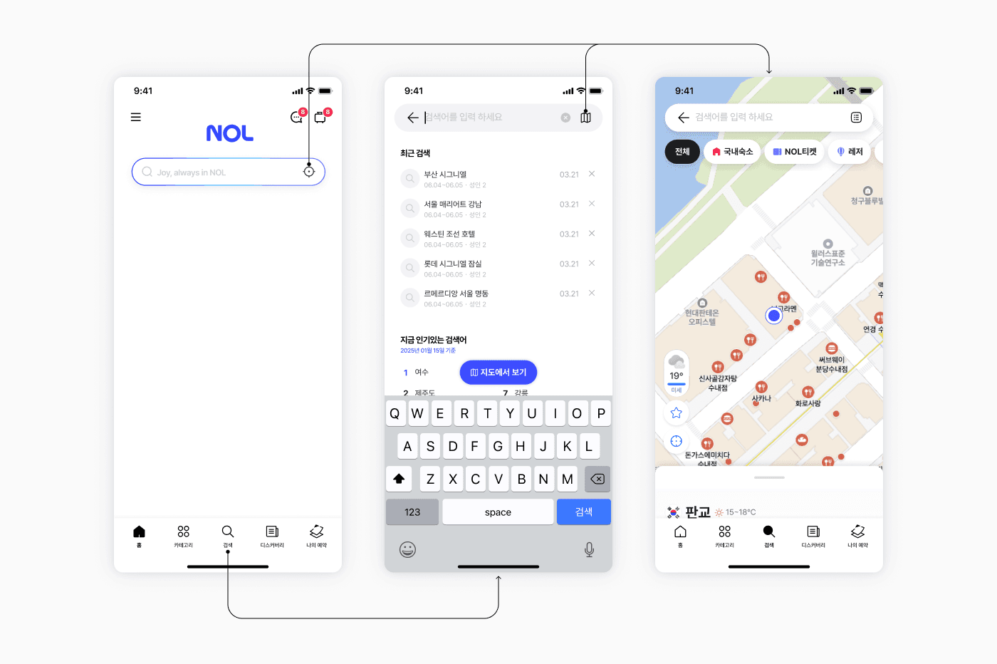 또한 NOL 통합 검색 개편 컨셉 디자인 프로젝트를 통해 ‘통합 검색’과 ‘지도 탐색’ 경험을 일원화 함으로써, 지도 탐색으로의 진입점 제공에 대한 이슈가 해소 되었기 때문 입니다.